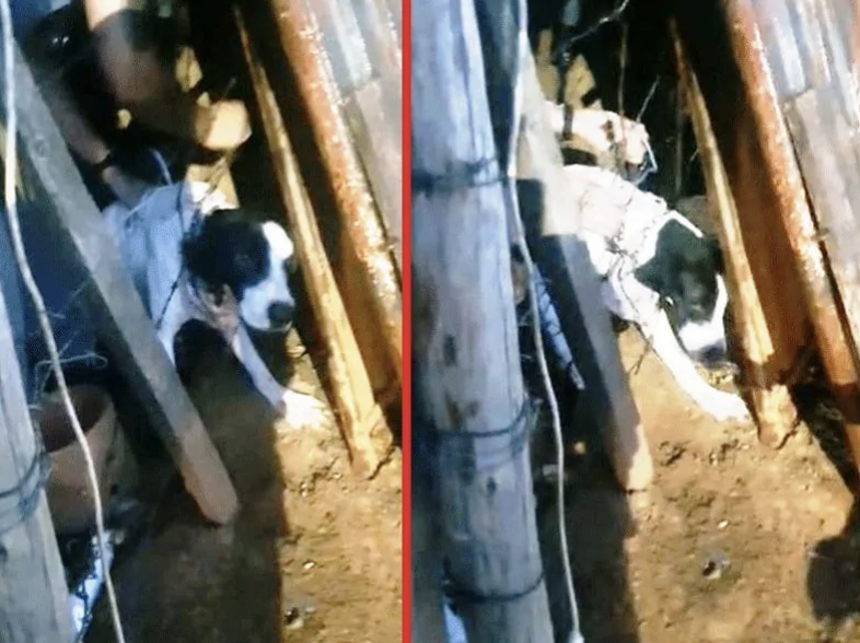 Os denunciantes descrevem que conseguiam escutar os uivos do cão a uma distância considerável, indicando o sofrimento do animal, que estava aprisionado por correntes e arame farpado.