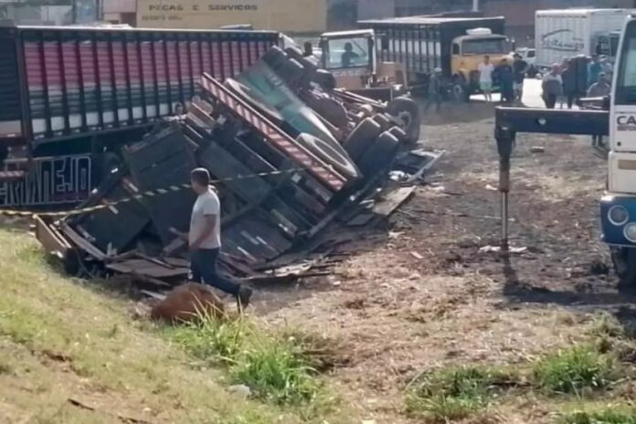 Um motorista de 52 anos, cuja identidade será preservada, morreu, na tarde desta terça-feira (06), após acidente envolvendo uma carreta carregada com gado. Na ocasião, o veículo pesado tombou e pegou fogo.