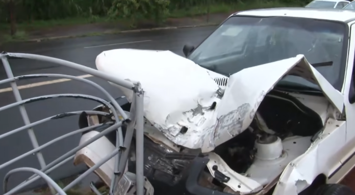 Um carro Fiat Uno Mille teve a parte dianteira destruída, na manhã desta segunda-feira (09), após o motorista atingir a grade de proteção da ciclovia localizada na avenida Paschoal Innecchi, em Ribeirão Preto. Uma suposta derrapagem teria motivado o acidente.