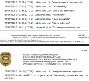 vendem o conteúdo pra ganhar dinheiro”, demonstram a exposição pública do crime, o que pode ter intensificado a urgência de Luiz em “limpar” e “ocultar” provas. Esse comportamento de Luiz e Letícia de tentar descredibilizar a atuação policial e a mídia reforça a tentativa de obstrução da justiça e a ocultação da verdade”, conclui o documento.