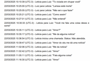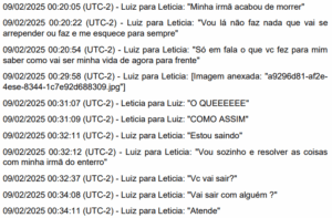 Na mesma data, Luiz diz à Letícia que: “amor eu tenho certeza que nunca vamos nos separar e cada momento cada provação que estamos tendo juntos me mostra cada dia mais quem é você e quem é a mulher que eu quero estar para sempre comigo”.