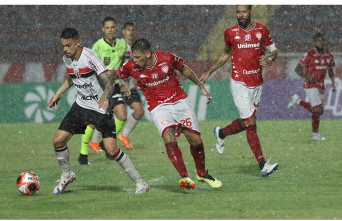 A partida foi paralisada aos 41 minutos em virtude da forte chuva em Bauru, que provocou impossibilidade da continuação da partida nesta quinta-feira.”