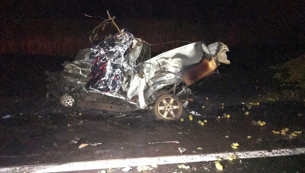 De acordo com informações preliminares, o acidente ocorreu no km 66, quando uma caminhonete Mitsubishi L 200, com placas de Uberlândia MG, bateu frontalmente em uma carreta carregada de laranja.