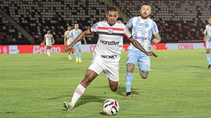 Ainda na etapa inicial, o time de Belém ameaçou com Garcez, que partiu em velocidade, invadiu a área e bateu para fora.