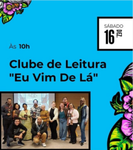 No sábado a instituição também está repleta de atividades, começando com o clube de leitura, “Eu vim de lá” e a Oficina de bordado poético, com Téia Rosa.