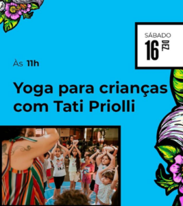 Às 11 horas tem prática lúdica de Yoga para as crianças com Tati Priolli.