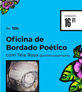 No sábado a instituição também está repleta de atividades, começando com o clube de leitura, “Eu vim de lá” e a Oficina de bordado poético, com Téia Rosa.