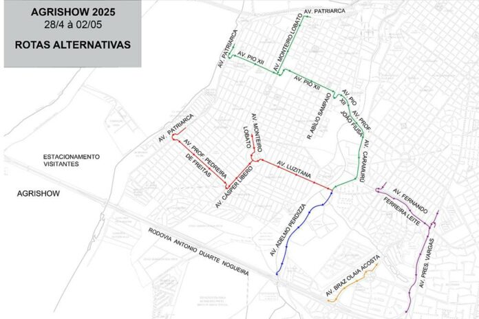 Todos os trajetos visam evitar a chegada dos interessados à feira internacional utilizando toda a extensão da avenida Patriarca (da avenida Bandeirantes até o dispositivo de acesso à Agrishow), onde possui um trânsito intenso no período do evento.