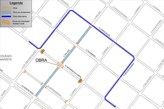 Em continuação das obras de drenagem na região Central, na próxima sexta-feira, 17 de janeiro, haverá a interdição total do cruzamento da rua São José com a rua Bernardino de Campos. O trânsito estará livre nas ruas Rui Barbosa e Campos Sales.