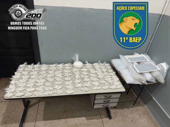 Durante a busca pessoal, constatou-se que o indivíduo trazia consigo 280 eppendorfs com cocaína. Em vistoria à uma residência, foi encontrado grande quantidade de drogas, além de apetrechos para o tráfico.