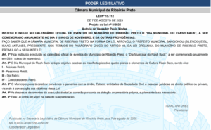 “Faço saber que a Câmara Municipal de Ribeirão Preto, na forma da lei, aprovou, o prefeito municipal sancionou (silêncio) e eu, Isaac Antunes, presidente, nos termos do parágrafo único do artigo 43, da Lei Orgânica do município de Ribeirão Preto, promulgo a seguinte lei”, destaca a publicação.
