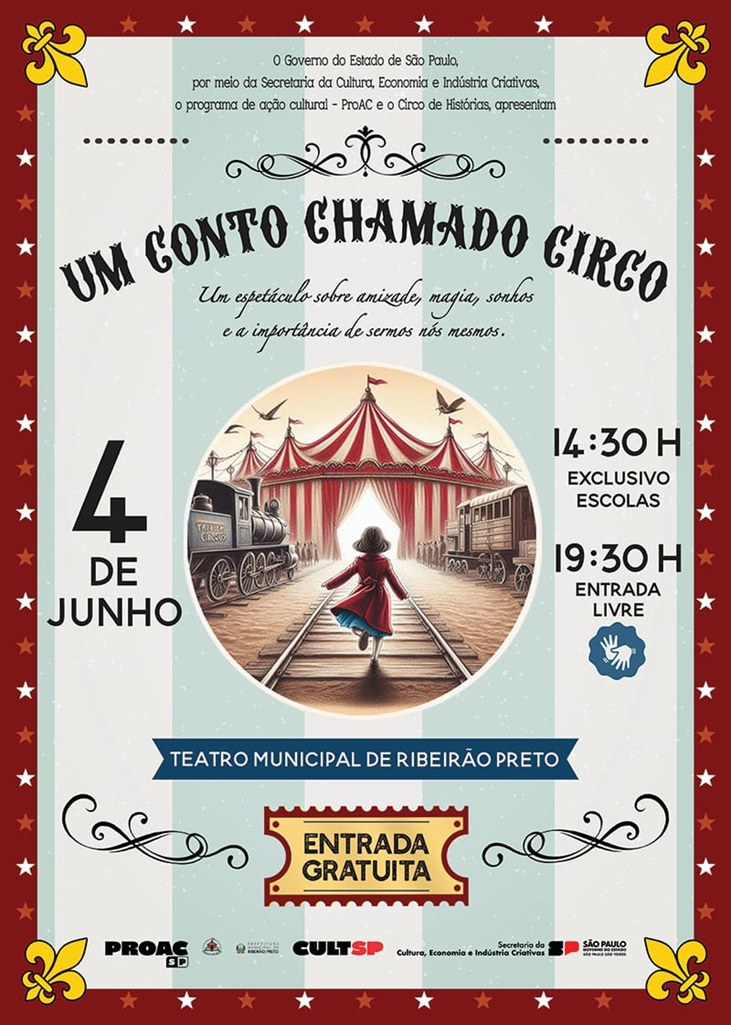 Uma história sobre amizade, magia, sonhos e sobre principalmente a importância de sermos nós mesmos será contada no palco do Teatro Municipal de Ribeirão Preto, com a peça “Um conto chamado circo”.