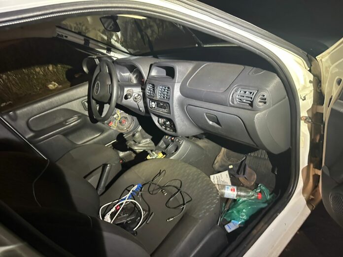 No interior do veículo Clio, os policiais encontraram os três celulares da vítima e uma carteira com pertences pessoais do proprietário do carro. De acordo com o boletim de ocorrência, por um dano no câmbio, o veículo estava sem possibilidade de locomoção.