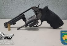 Com arranhões e mordidas, o homem passou a agredir os policiais, o que resultou no conflito corporal entre as partes. Durante tal conflito, uma das armas teria caído ao solo.