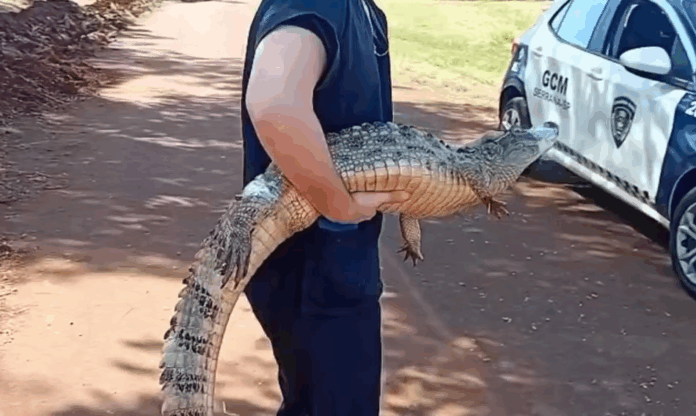 Diante do encontro do animal silvestre, moradores acionaram a Guarda Municipal e a Defesa Civil. Com o apoio de populares, o jacaré foi imobilizado e resgatado, sem qualquer ferimento.