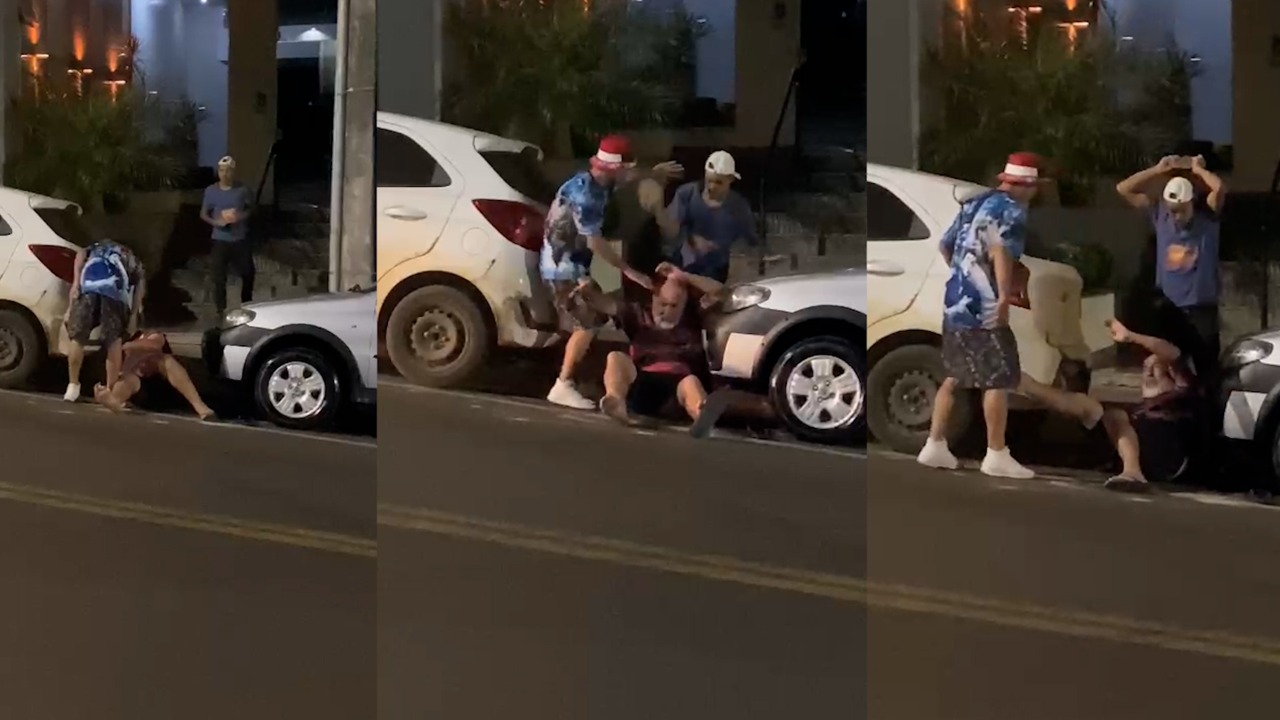 Imagens gravadas por um celular mostram o momento em que o idoso, caído ao chão, é violentamente agredido pelos jovens. Um deles apanha uma pedra e disfere na cabeça do idoso, que consegue resistir. Inconformado, o jovem pega outra pedra e repete o gesto, desta vez provocando desmaio no homem.