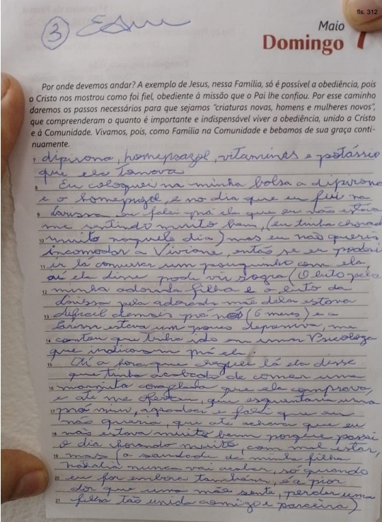 “Eu coloquei na minha bolsa a dipirona e o omeprazol, e no dia que eu fui na Larissa, eu falei para ela que eu não estava me sentindo muito bem (eu tinha chorado muito naquele dia) mas eu não queria incomodar a Viviane, então se eu poderia ir lá conversar com ela um pouquinho com ela, ai ela disse – pode vir sogra”.