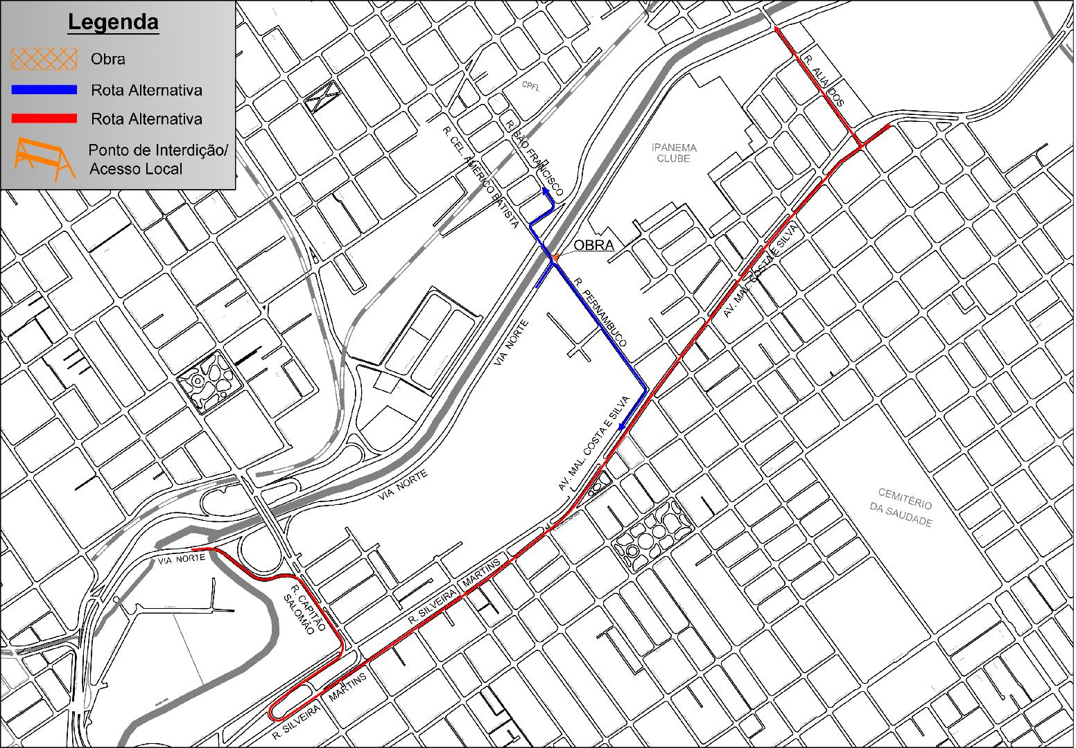 Com essa intervenção viária, a RP Mobi recomenda aos condutores a utilizarem as seguintes rotas alternativas: