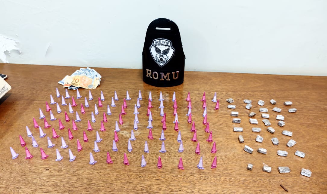 Ao ser questionado sobre os materiais, o adolescente assumiu vender droga no local. Ainda no terreno da praça, foram encontrados mais 101 cápsulas e 33 trouxinhas, totalizando 106 cápsulas de aparentemente cocaína e 34 trouxinhas de aparentemente maconha.