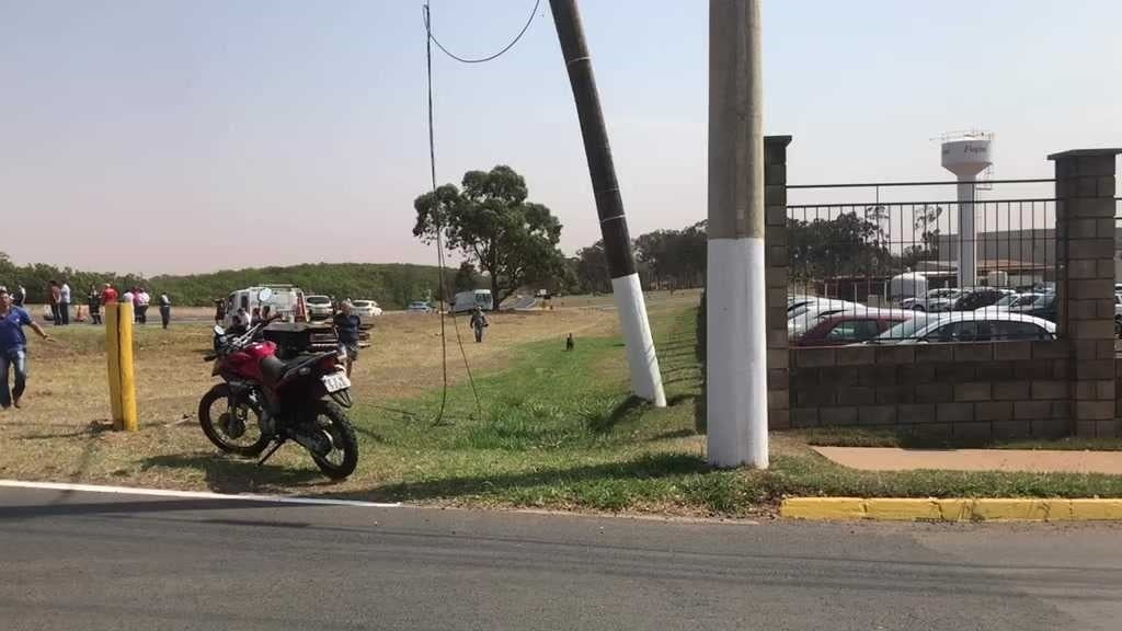 O impacto foi tão forte que chegou a quebrar o poste. As causas que levaram à queda dos fios ainda não foram esclarecidas. A polícia inicia a investigação para elucidar o caso.