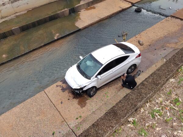 De acordo com testemunhas, o homem relatou que o acelerador do veículo travou, fazendo com que perdesse o controle da direção. Sem conseguir frear, o carro foi parar dentro do córrego da avenida.