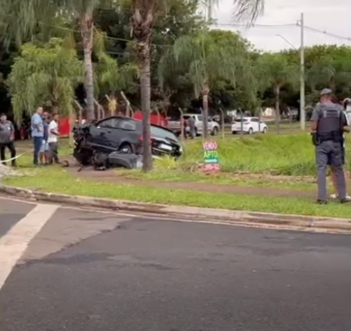 Um carro ocupado por quatro pessoas derrubou um poste após o motorista perder o controle da condução do veículo, na avenida Heráclito Fontoura Sobral Pinto, na zona Sul de Ribeirão Preto.