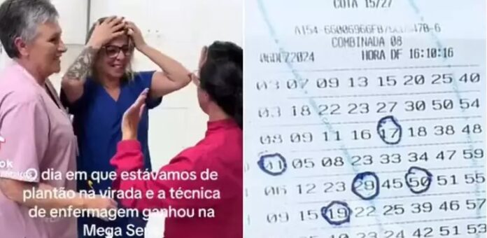 No vídeo, as profissionais estão no corredor do hospital e abraçam Bittencourt, que chora de emoção. Também é possível ver o bilhete “vitorioso”, com os números sorteados circulados -em jogos diferentes.