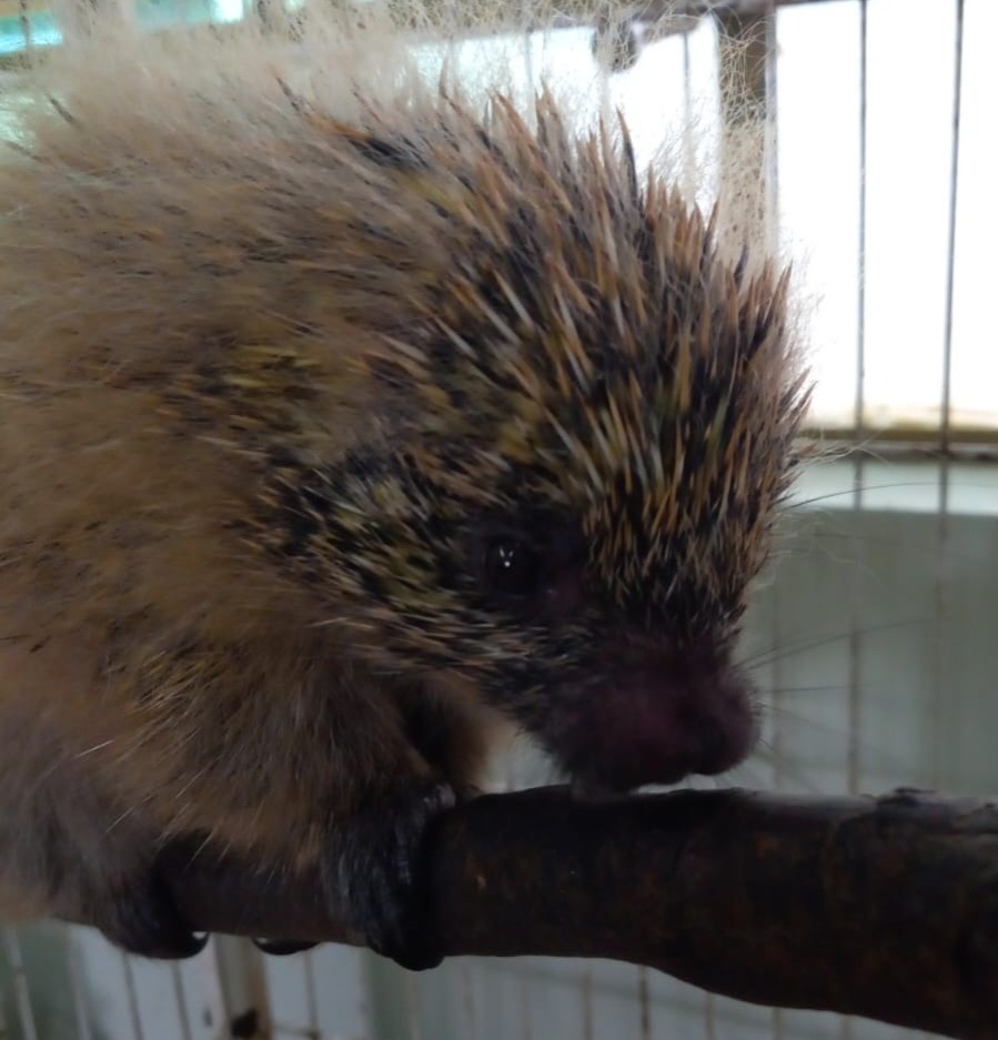 Um ouriço-cacheiro (Coendou prehensilis), filhote, encontrado órfão na Estação Ecológica Mata de Santa Tereza em 20/07/2023 foi recebido no Bosque Zoológico Fábio Barreto passando por reabilitação para retorno à vida silvestre.