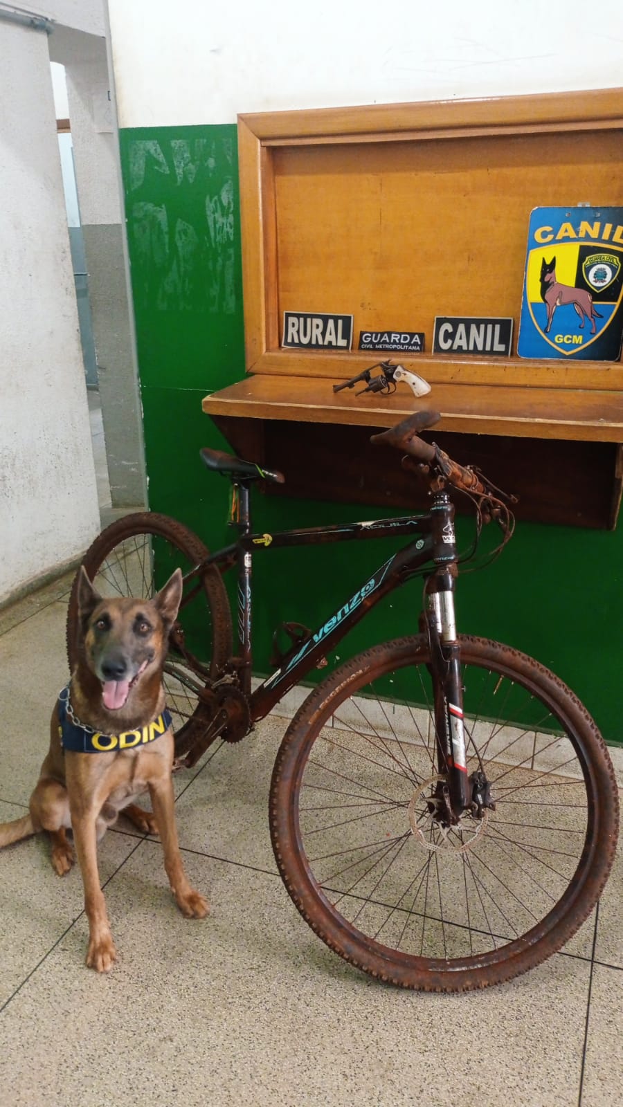 Como havia a denúncia de que este homem estava armado, foi solicitada a presença do canil da GCM para encontrar a arma do crime. Com o auxílio do K9 Odin, a equipe do Canil 360 localizou a arma calibre32 e a ocorrência foi apresentada pela C.P.J à autoridade de plantão, que ratificou o presente registro, sendo apreendido o revólver e feita a devolução da bicicleta à vítima.