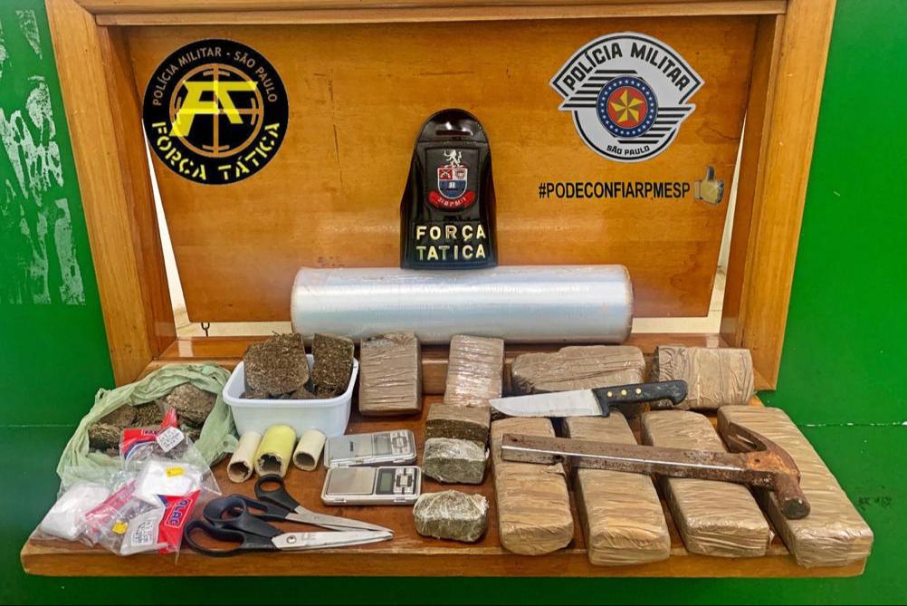 Questionado pelos policiais, o homem confessou que fazia o fracionamento no local e os pedaços seriam distribuídos em “lojinhas” de vendas de drogas na região. Ele ainda indicou que sob um cobertor no quarto, teria mais alguns tabletes.