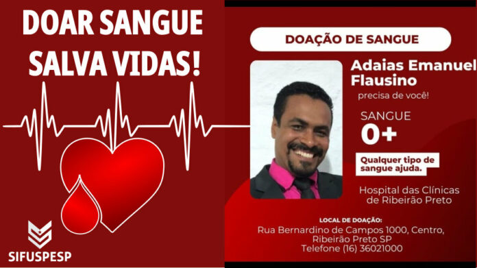 Conforme informado pela família, Adaias está internado na Unidade de Emergência do Hospital das Clínicas e seu tipo sanguíneo é O +. Sendo assim, deve receber bolsas com sangue de pessoas com tipo O+ e O-, mesmo sendo doador universal.