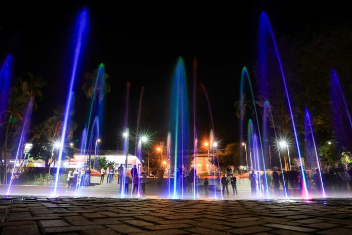 Com investimento de R$2.7 milhões, a nova praça foi projetada com estruturas sustentáveis, como a própria fonte, que reutiliza a água de forma inteligente. “Para garantir um equipamento eficiente e ecológico, a fonte foi desenvolvida para que a água seja reaproveitada. Os jatos são drenados de volta para a estrutura e direcionados a um reservatório subterrâneo, onde passam por filtragem e recirculação antes de retornarem à fonte”, explica o engenheiro civil da Secretaria de Infraestrutura, Roberto Mori Filho, responsável pela fiscalização da obra.