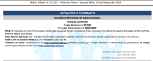 A Prefeitura de Ribeirão Preto publicou no Diário Oficial desta quarta-feira (04) um aviso de licitação visando a compra de ovos de páscoa para distribuição aos alunos da rede municipal de ensino.