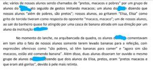 Complementavam ainda: “Agora sim são macacos, estão até comendo banana”. Além disso, os alunos da escola particular cantavam uma “música” com os dizeres “Elisa lixo, Elisa lixo, além de pobres, suas mães não tiveram dinheiro para abortar e nem uma boa escola pagar”.
