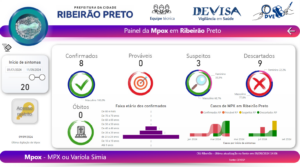 Para monitoramento dos casos de Mpox, a SES conta com um painel onde são registrados os números confirmados, suspeitos, descartados e total de notificados. O serviço pode ser acessado em: https://cievs.saude.sp.gov.br/mpox/