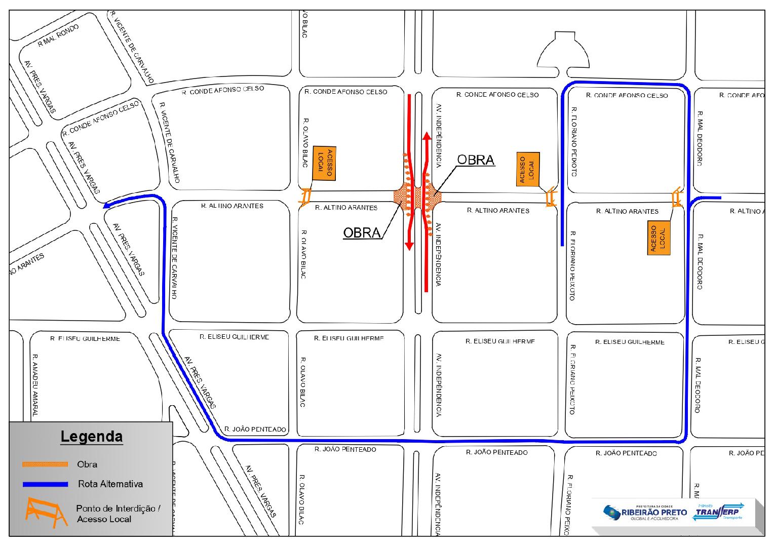 Desta forma, os condutores que vêm da região do Boulevard pela rua Altino Arantes em direção à avenida Presidente Vargas deverão desviar à esquerda na rua Marechal Deodoro, à direita na rua João Penteado, à direita na avenida Presidente Vargas, à direita na rua Vicente de Carvalho até acessar novamente a avenida Presidente Vargas.