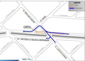 Com a intervenção, quem vem pela avenida Zerrener em direção ao bairro Sumarezinho e Jardim Antarctica, deve virar à direita na rua São Salvador, à esquerda na rua Pará, à direita para retomar à avenida Antônio e Helena Zerrener.