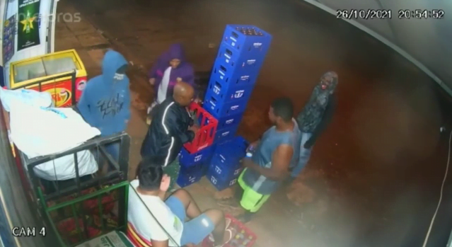 Câmeras de segurança registraram a ação dos bandidos, os três assaltantes chegaram ao local encapuzados e renderam quatro homens que estavam no local, logo em seguida eles foram levados para uma sala separada.
