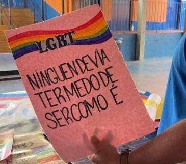 Em conversa no local, alunos relataram que os cartazes estavam sendo produzidos com conhecimento e anuência da direção da escola.