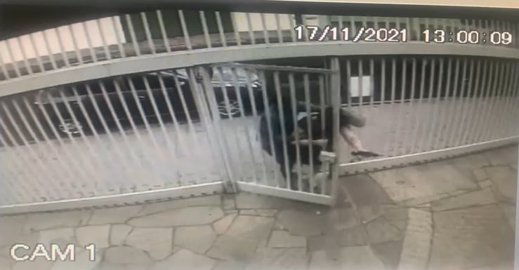 A filmagem mostra quando um dos homens se aproxima rapidamente e segura a vítima pelo pescoço e aponta uma arma em direção a cabeça, ela tenta entrar para dentro do estabelecimento, no entanto, o assaltante entra junto. Segundo a vítima, o assaltante falou que atiraria no rosto dela.