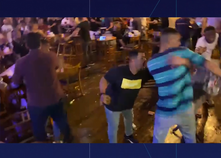A discussão entre dois homens, no estabelecimento On Bar, foi registrada por clientes do local e também por uma câmera de segurança da vizinhança. Na primeira imagem, os envolvidos aparecem alterados no meio de uma discussão. Após algumas pessoas tentarem separá-los, um deles parte para cima de uma mesa e derruba as bebidas de um grupo de mulheres. A briga continua até os seguranças encerrarem a confusão.