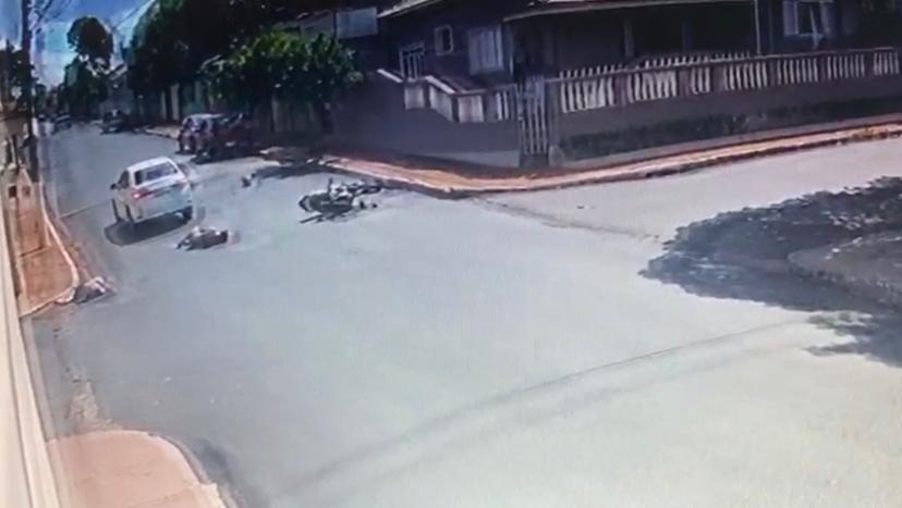 Um vídeo registrado por uma câmera de segurança mostra o momento em que uma criança de nove anos, que não teve o nome divulgado, é arremessada da garupa da moto após um acidente envolvendo um carro, que ocorreu neste sábado (28), em Serra Azul, na Região Metropolitana de Ribeirão Preto.
