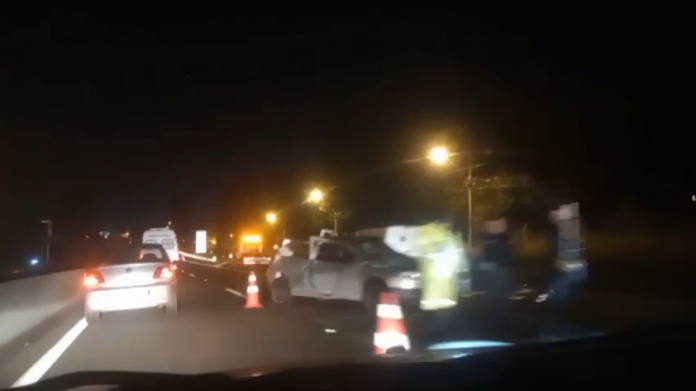 De acordo com o Boletim de Ocorrência, a Polícia Militar chegou no local do acidente e encontrou o Volkswagen Gol atravessado na pista.
