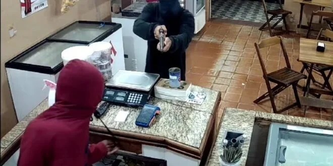Um vídeo registrado pelo circuito de segurança de uma farmácia da zona Sul, nesta segunda-feira (8), flagra o momento em que uma mulher é jogada no chão durante tentativa de roubo.