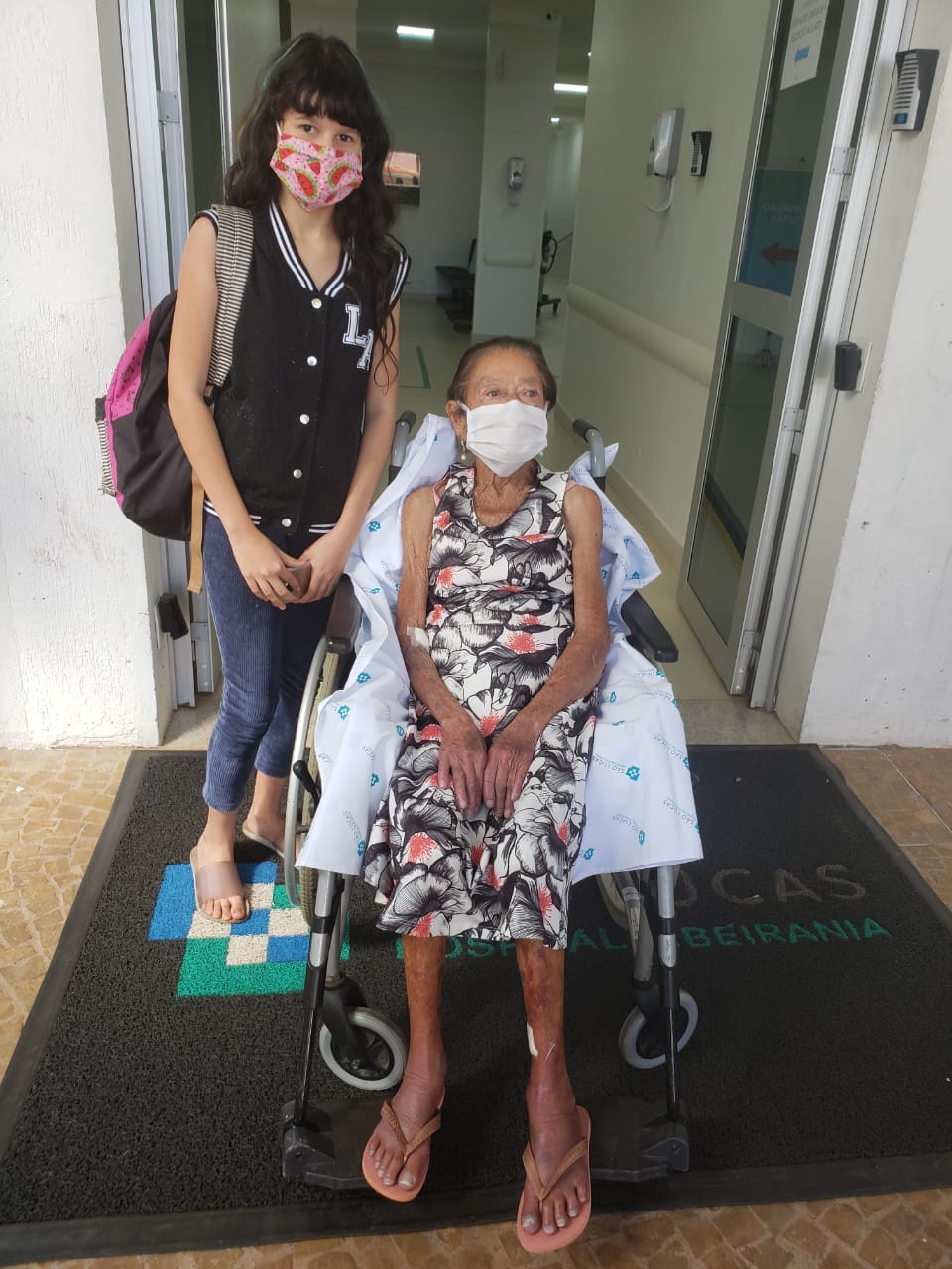 “Quero abraçar muito minha família, minhas netas”, disse a idosa, ao sair do hospital. Na saída, ela foi saudada pela equipe de profissionais do hospital e recebeu o carinho da família. Ela tem quatro filhos, cinco netos e três bisnetos.