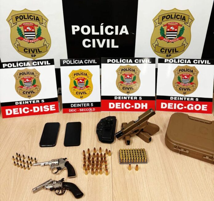 Durante o cumprimento de mandados judiciais, os policiais encontraram três armas de fogo na residência do empresário: duas de calibre .22, sem registro, e uma pistola calibre 9 milímetros com documentação vencida, além de munições. Diante do material apreendido, ele foi preso em flagrante.