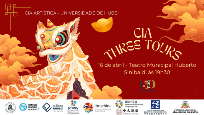 A apresentação “Língua Chinesa, Unindo Amizades entre a China e a América Latina”, da companhia artística Three Tours, da Universidade de Hubei, será realizada no Teatro Municipal Humberto Sinibaldi Neto, com entrada gratuita.