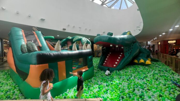 As férias escolares ganharam um reforço especial no Shopping Cidade Norte com a chegada do Magic Alligator, atração infantil que promete muita diversão e aventura para crianças de todas as idades. Instalado na entrada principal do shopping, o espaço chama a atenção pelo inflável gigante em formato de jacaré, com cerca de quatro metros de altura, que convida os pequenos a escalar, entrar pela boca do personagem e se divertir em um amplo pula-pula inflável.