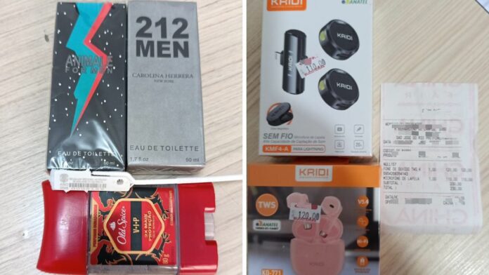 Questionado, ele confessou ter furtado um fone de ouvido e um microfone de lapela, avaliados em cerca de R$ 230. O suspeito também admitiu ter praticado furto em outro estabelecimento do Calçadão, de onde teria levado perfumes.