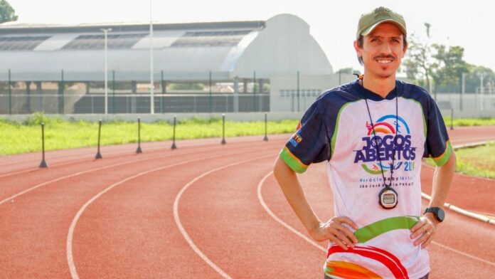 O treinador acompanha a atleta Zileide Cassiano da Silva, medalhista paralímpica no salto em distância da classe T20, destinada a atletas com deficiência intelectual.